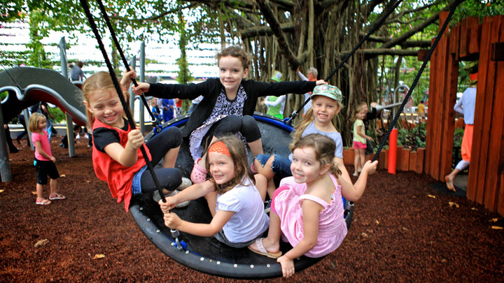 Located just past the Flowstate lies an open grassy area, perfect for family and friends alike. The space features a serene island forest with giant ficus, a pond teeming with wildlife, a state-of-the-art playground for kids of all ages and free undercover barbecues.